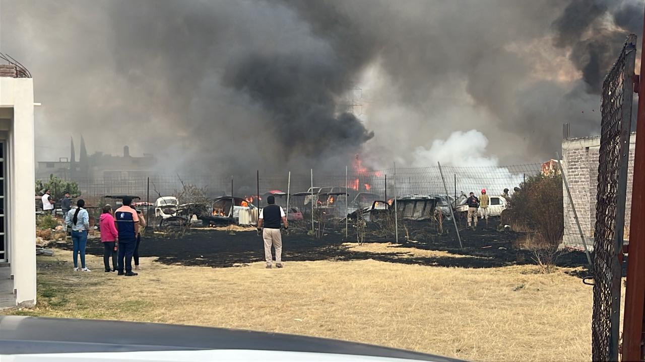 Elementos del cuerpo de bomberos de Texcoco sofocó un incendio de pastizal fuera de control en la comunidad de la Resurrección, mismo alcanzó un terreno aledaño en donde estaba un taller de hojalatería y pintura alcanzando a quemar 14 vehículos, sin que se registrarán personas lesionadas, solo daños materiales. Personal de la Dirección de Protección Civil, Bomberos y Atención Médica Prehospitalaria a cargo del Director Jesús Emilio Duarte Olivares, acudieron para sofocar el incendio que ya había alcanzado el taller de hojalatería y pintura, logrando confinar el fuego en la zona hasta sofocarlo evitando su propagación a otros predios.