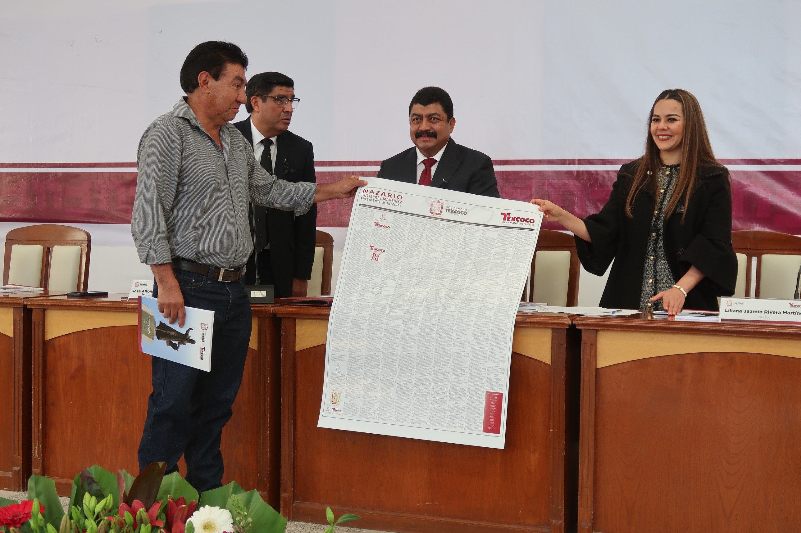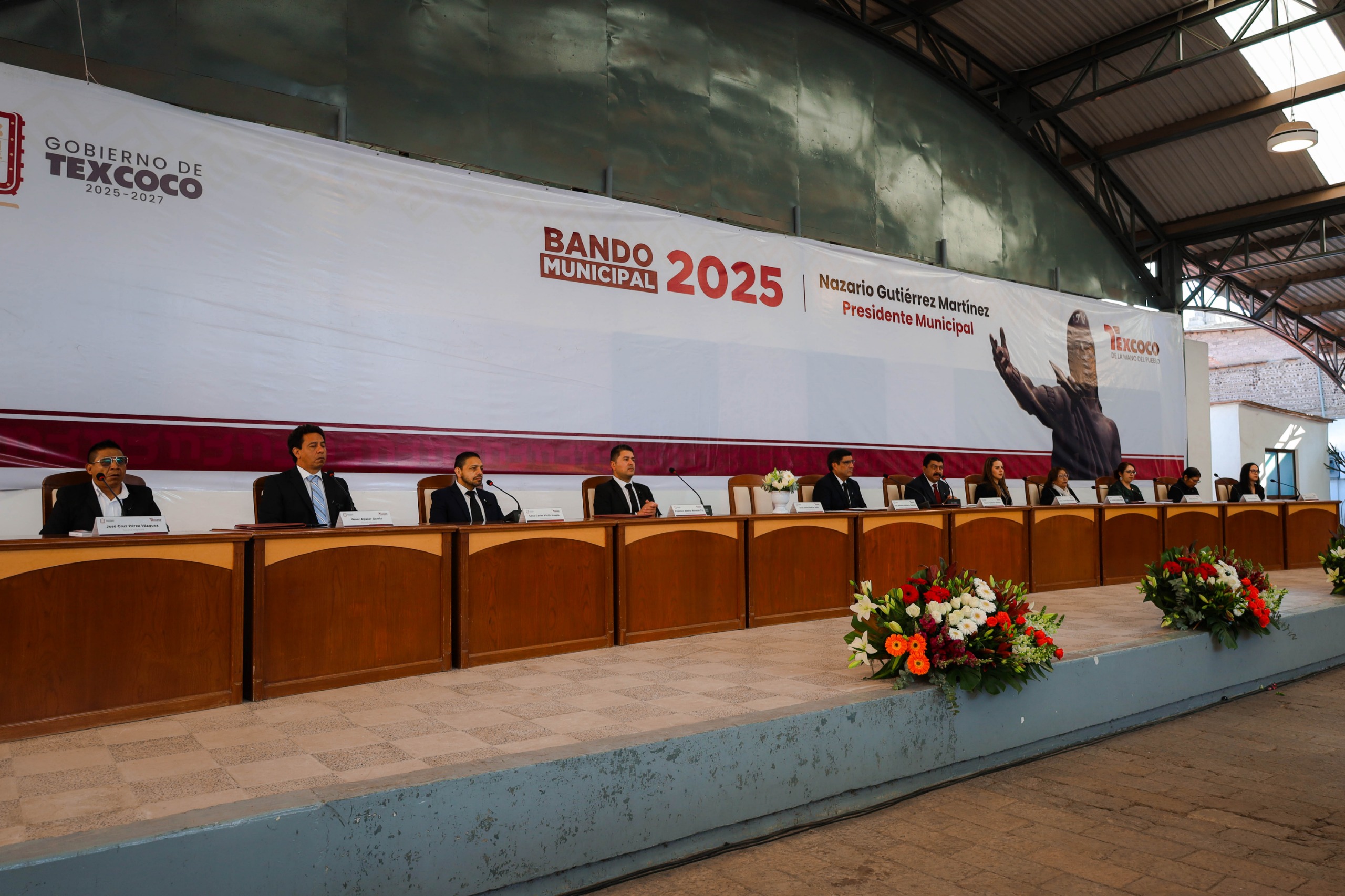 Al presentar las modificaciones al Bando del Municipio de Texcoco, el Presidente Municipal Nazario Gutiérrez Martínez, acompañado de los integrantes del cabildo, el secretario del Ayuntamiento Alfonso Valtierra Guzmán, la presidente del Sistema Municipal para el Desarrollo Integral de la Familia (DIF) Texcoco, Yesenia Armas Tobón; así como autoridades auxiliares de las comunidades y cabecera municipal de esta localidad.