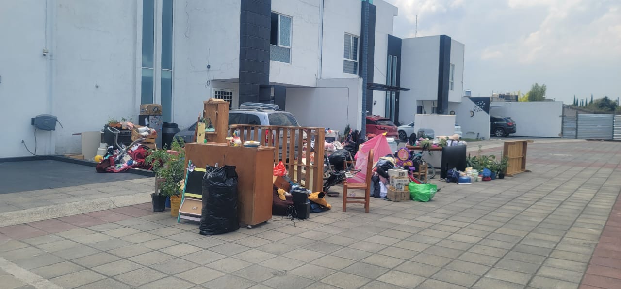 Arribando el Operativo a la calle Mérida 108, interiores 45 y 16 del fraccionamiento La Floresta, en donde se detuvo a 50 rersonas como probables responsables de los delitos de extorsión y despojo y aseguraron dos armas de fuego y nueve vehículos.