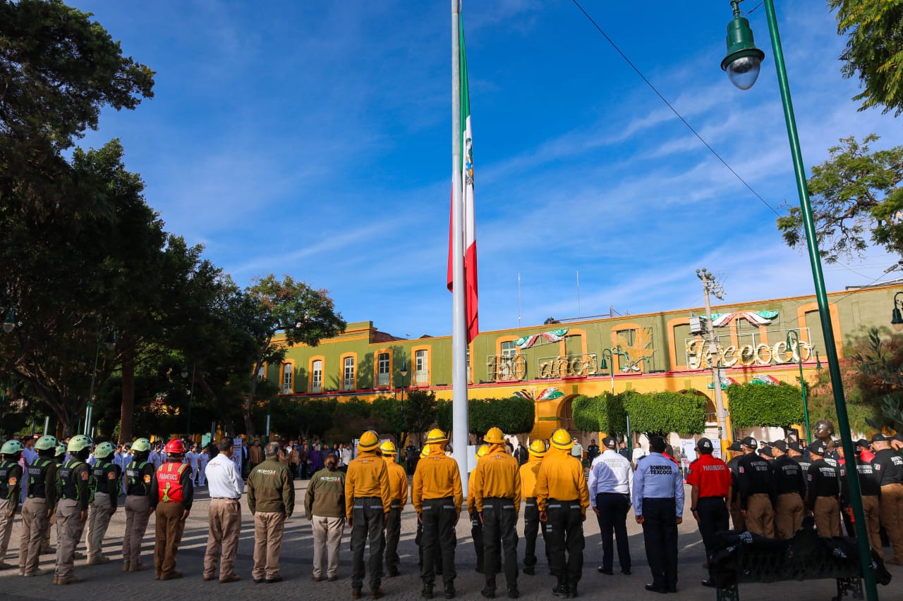 En punto de las 7:00 horas, comenzó la ceremonia conmemorativa del día de la Protección Civil, recordando a las víctimas de los sismos del 19 de septiembre de 1985 y 2017, en donde estuvieron presentes el Presidente Municipal Nazario Gutiérrez Martínez, la presidenta honoraria del Sistema Municipal para el Desarrollo Integral de la Familia Yesenia Armas Tobón, el Secretario del Ayuntamiento José Alfonso Valtierra Guzmán, Síndica, Regidores, Directores del Gobierno Municipal, así como la Delegada de la Protectora del Bosque en la zona oriente Mirian González con la brigada de la institución, Oscar Alberto Garay Martínez de la Secretaría de Seguridad del Estado de México, Miguel Angel Camacho de la Cruz Roja con sus respectivo personal y parte de la Guardia Nacional Edgar Octavio Barragán.